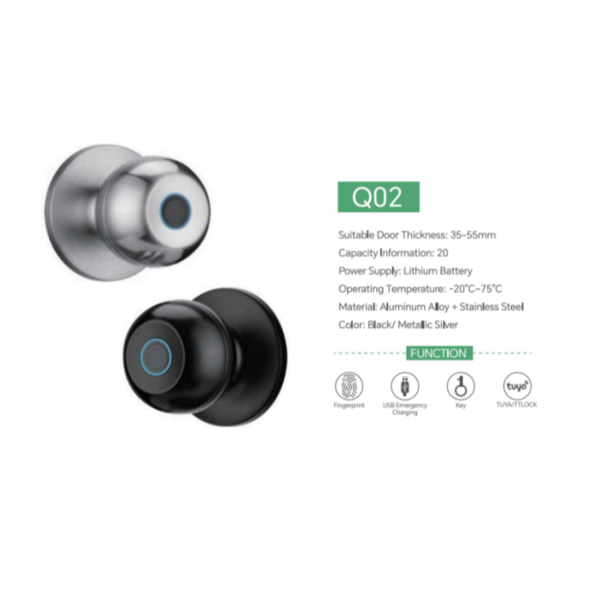 ✔️ OUTDOOR SMART LOCK SMART BALL LOCK Q02 features a simple, sleek, and hidden design crafted from high-quality aluminum alloy and stainless steel. It offers convenient unlocking options including fingerprint, mechanical key, and TUYA mobile app access. Equipped with USB emergency charging, the Q02 provides reliable security and modern style. Available in two elegant colours.
